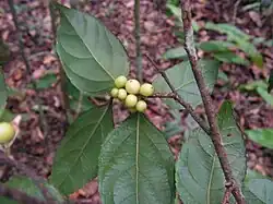 | The ciliate leaves and subglobose berries of Xylosma ciliatifolia. | |