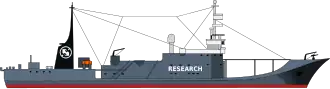 The Yushin Maru No. 3 (第三勇新丸, Daisan Yūshin Maru) is a Japanese-registered whale catcher that undertakes whaling operations in the North Pacific Ocean and Southern Ocean. Along with other vessels of the Japanese whaling fleet she has been featured on American television, in the documentary-style reality series Whale Wars.[4]