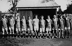 Another notable event in 1921 was the formation of the Queensland Ladies Soccer Football Association, at a meeting held in the Brisbane Gymnasium, at which "about 100 ladies were present."[97] It appears that three clubs were formed and played 'friendly' matches during the season: Latrobe Ladies (see photo), North Brisbane and South Brisbane. Remarkably, about 10,000 spectators attended at the Brisbane Cricket Ground in September 1921, to see North Brisbane defeat South Brisbane 2-0 in their first game.[98] The annual meeting of the association in 1922 expressed the desire to commence regular fixtures during the forthcoming season with "about half a dozen teams".[99] However, apart from a practice match between the 'Brisbane City' and 'Brisbane Ladies' clubs at Bowen Park in June 1922 (which City won 12-0), there are no known records of the progress of this association after that time.[100]