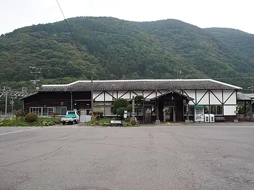- ^ a b c d Shinano Mainichi Shimbun (2011). Nagano Prefecture All Railway Stations, revised edition (長野県鉄道全駅 増補改訂版) (in Japanese). Shinano Mainichi Shinbun Publishing. p. 178. ISBN 9784784071647.