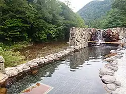 Oku-yagen Hot Spring is located 2 km upriver and an outdoor bath (露天風呂, rotenburo) called 'Kappa-no-yu'. The outdoor baths 'Oku-yagen Onsen Rest House' and 'Fufu-kappa-no-yu' (Wedded Kappa Bath) are run by the municipality and are both located along the riverside.