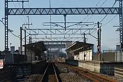 This station consists of two opposed side platforms serving two tracks, connected to the station building by a footbridge.[1]