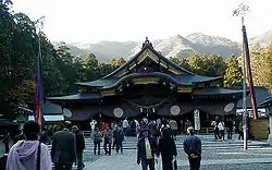 Yahiko jinja (弥彦神社), also known as Iyahiko-jinja is a Shinto shrine in the Yahiko neighborhood of the village of Yahiko, Nishikanbara District, Niigata Prefecture, Japan. It is one of the three shrines which claim the title of ichinomiya of former Echigo Province.[1] The shrine's annual festival is held on February 2.[2] This shrine standing at the foot of a mountain is popularly and traditionally known as a power spot for love and good fortune.[3]