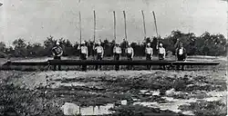 The flag in this painting of the Yale 1859 crew team is believed to be the first documented Yale Blue, though the photograph is in black and white.[2]