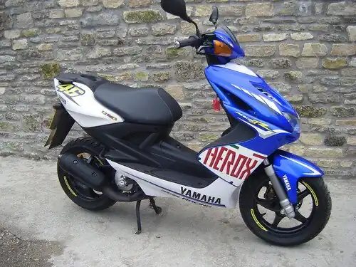 In 1997 Yamaha introduced the Aerox to the European market. It came in two models, the 2-Stroke 50 cc[1] (Internally known as the YQ50) powered by the Minarelli MA-50 horizontal Liquid cooled engine with a front and rear disc brake (DD), this engine came restricted to 45 km/h from the factory to follow European law on 50 cc mopeds. The 2-Stroke 101 cc[2] (internally known as the YQ100) version powered by a horizontal 101 cc forced air cooled Minarelli 2-Stroke engine with a single front disc and a rear drum brake (SD). Both models came equipped with an automatic lubrication system with a separate oil tank for 2-Stroke oil.