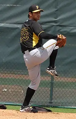 ![]() Yao-Hsun Yang pitching for the Pittsburgh Pirates | |