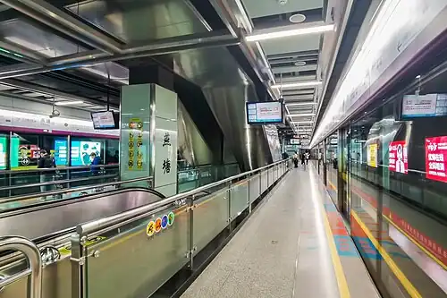 Yantang Station (Chinese: 燕塘站; Cantonese Yale: Yintòhng Jaahm) is an interchange station between Line 3 and Line 6 of the Guangzhou Metro. The underground station is located on the Guangshan Highway (广汕公路) (Yantang Section) in the Tianhe District of Guangzhou.[1] It started operation on 30 October 2010 and on 28 December 2013, became an interchange station between Lines 3 and 6.[2]