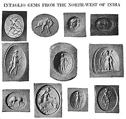 - ^ "The survival into the 1st century AD of a Greek administration and presumably some elements of Greek culture in the Punjab has now to be taken into account in any discussion of the role of Greek influence in the development of Gandharan sculpture", The Crossroads of Asia, p14