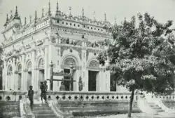 Yaw Mingyi Monastery (Burmese: ယောမင်းကြီးအုတ်ကျောင်း) is a Buddhist monastery in Mandalay, Burma, built in 1866 under the patronage of Pho Hlaing, the Yaw Mingyi.[1] Unlike classic Burmese monasteries, the Yaw Mingyi Monastery was a brick monastery modeled after a hotel the Yaw Mingyi had seen while traveling in Southern Italy,[2] and as such, adopts European flourishes and is extravagantly carved in plaster.[3] It was located near the Salin Monastery.[3] The monastery was burned down all wooden infrastructure, remained only brick structure during World War II during the Allied bombing of Mandalay.[1]