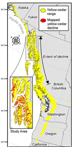 - ^ a b USFS Website, "Climate Change and Yellow-Cedar Decline"