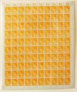 Between 20 and 22 September 2007 the only complete sheet of stamps was exhibited at the Philately and Coin fair ("Philatelie und MünzExpo") in Cologne. The copy on display was from Bonn's Philatelic Archive. The sheet is insured for one million euro.[1]
