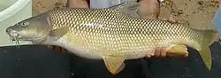 The yellowfin barbel (Luciobarbus xanthopterus) is a species of cyprinid fish endemic to the Tigris-Euphrates River System.