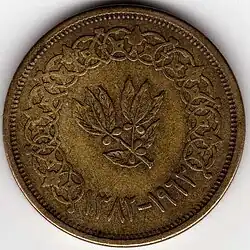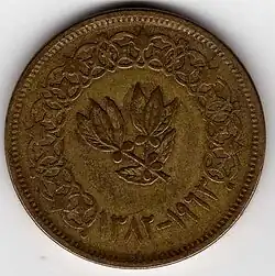 The buqsha coin itself is bronze and approximately 27 mm (1 inch) across. Modern Yemeni currency also includes silver coins worth 5, 10 and 20 buqshas, and bronze half-buqsha coins. These were introduced after Yemeni independence from the Ottoman Empire.