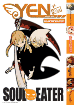 ![]() Cover of the first issue of Yen Plus featuring Maka and Soul Eater from Soul Eater. Illustration by Atsushi Okubo. | |