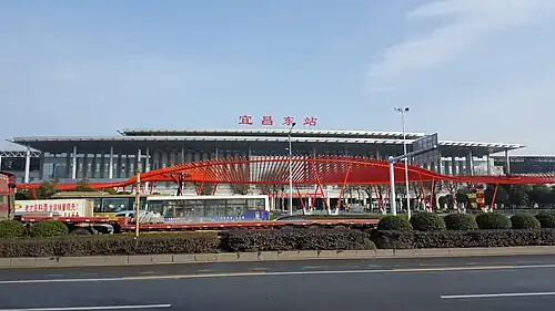 Yichang East railway station (simplified Chinese: 宜昌东站; traditional Chinese: 宜昌東站; pinyin: Yíchāng-dōng Zhàn), formerly Huayan railway station (Chinese: 花艳站), is a railway station in Yichang City, Hubei Province, China. It is the junction of two sections of the Shanghai–Wuhan–Chengdu high-speed railway (Huhanrong): the Hanyi Railway, going east to Hankou (Wuhan), and the Yiwan Railway going west to Lichuan and Wanzhou. The Hanyi Railway is operated by the Wuhan Railway Bureau.