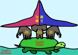 The Ynglists reject official historical narrative, which they believe to be manipulated, and argue that it should be replaced with history as told in their Slavo-Aryan Vedas or with koshchunosloviya, that is history based on Russian folk tales (koshchuny).[64] They believe that "Yngling", a name that identifies the earliest royal dynasties of Sweden and Norway, means "offspring of Yngly", and that the historical Ynglings migrated to Scandinavia from the region of Omsk, which was a spiritual centre of the early Aryans.[17] They hold that the Saga ob Ynglingakh, their Russian version of the Scandinavian Ynglinga saga (itself composed by Snorri Sturluson on the basis of an older Ynglingatal), proves their ideas about the origins of the Ynglings in Omsk, and that the Scandinavian Eddas are ultimately a more recent, western European and Latinised version of their own sacred books, the Slavo-Aryan Vedas.[17]