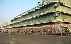Much of Yokohama was destroyed on September 1, 1923, by the Great Kantō earthquake. The Yokohama police reported casualties at 30,771 dead and 47,908 injured, out of a pre-earthquake population of 434,170.[12] Fuelled by rumors of rebellion and sabotage, vigilante mobs thereupon murdered many Koreans in the Kojiki-yato slum.[13] Many people believed that Koreans used black magic to cause the earthquake. Martial law was in place until November 19, 1923. Rubble from the quake was used to reclaim land for parks, the most famous being the Yamashita Park on the waterfront which opened in 1930.
