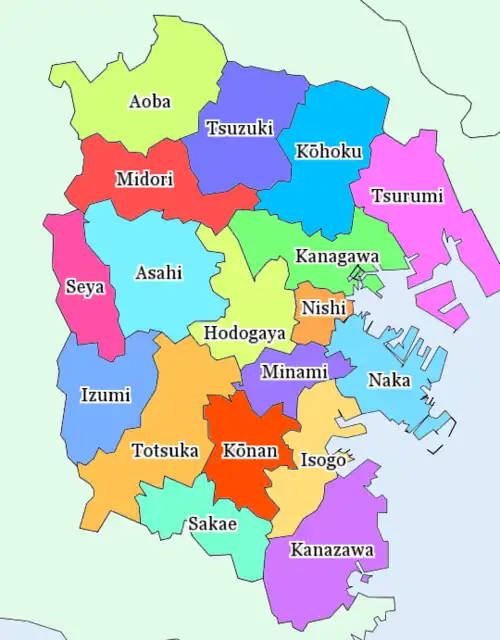 ![]() Map of Kanagawa Prefecture with Yokohama highlighted in purple | |
