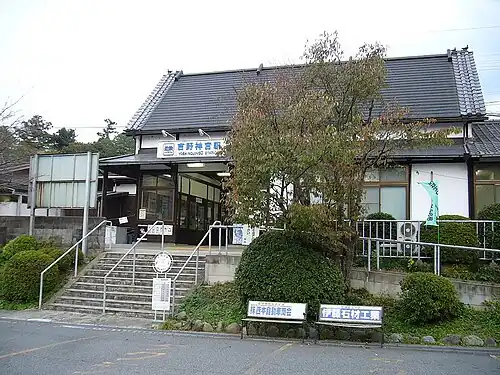 Yoshino-Jingū Station (吉野神宮駅, Yoshino-Jingū-eki) is a passenger railway station located in the town of Yoshino, Nara Prefecture, Japan. It is operated by the private transportation company, Kintetsu Railway.[1]