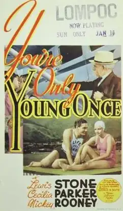 You're Only Young Once is a 1937 American comedy film directed by George B. Seitz. Following A Family Affair, it is the second film of the Andy Hardy series. Lewis Stone replaces Lionel Barrymore as Judge Hardy while Fay Holden replaced Spring Byington as his wife since both Barrymore and Byington were too expensive for the sequel's modest budget. Mickey Rooney would repeat his role as Andy while Cecilia Parker, as his sister, and Sara Haden, as Aunt Milly, would also reprise their roles from the original film. They were the only original actors transferred to the series.[1]