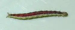 The wingspan is 18–23 mm. The head and thorax are white, patagia deep brown. Forewings with apex very strongly falcate; deep ochreous-brown, lighter towards costa anteriorly; a light yellow dorsal streak from base to tornus, edged above by a fine white line which is posteriorly bent obliquely upwards to disc at 2/3. Hindwings are rather dark grey. The larva is pale yellowish-green; dorsal stripe broad, brown-reddish.[1]
