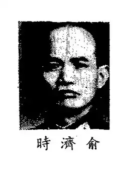 Yu Jishi (traditional Chinese: 俞濟時; simplified Chinese: 俞济时; pinyin: Yú Jìshí; 1 May 1904 – 25 January 1990) was a Chinese Nationalist military general from Fenghua, Zhejiang.[1] He graduated from Whampoa Military Academy.[1]