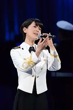 Yukari Miyake (三宅 由佳莉, Miyake Yukari; born December 14, 1986) is a Japanese singer and naval officer who is the vocalist of the Tokyo SDF Band.[1] The first and only official vocalist for the Music Corp to join the Japan Maritime Self-Defense Force (JMSDF),[2] Miyake has released a number of CDs she sang with the SDF Band.[2] She holds the rank of petty officer 2nd class in the Japanese Navy.[1]