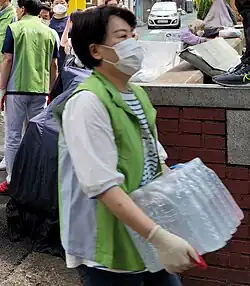 On 30 July, she delivered a speech at the National Assembly Proceeding Hall, known as "I'm a lessee."[6][7] During the speech, she criticised the ruling Democratic Party for the newly passed 3 Rental Acts.[6][7] This speech was praised by another UFP MPs i.e. Hwangbo Seung-hee and Park Soo-young.[7] On 6 August, Realmeter analysed that the speech helped the UFP to gain more supports.[8]