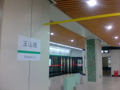 Yushan Lu Station (Chinese: 玉山路站) is a station of Line 1 of the Suzhou Metro. The station is located in Suzhou New District of Suzhou. It has been in use since April 28, 2012, the same time of the operation of Line 1.[1]