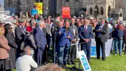 Blanchet at a press conference supporting Bill C-282 for supply management
