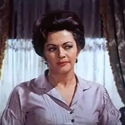 She prepared extensively for the role, taking weaving lessons at the University of California, Los Angeles, and shepherding lessons in the San Fernando Valley.[107] Months before filming began, she had worked on the part with a drama coach.[108] Her scenes were shot on Paramount's sound stages in 1955. Her performance received praise from critics. Crowther, the New York Times critic, was impressed: "Yvonne De Carlo as the Midianite shepherdess to whom Moses is wed is notably good in a severe role."[109] The Hollywood Reporter wrote that she "is very fine as the simple Sephora,"[110] and the New York Daily News noticed that she "plays the wife of Moses with conviction."[111] De Carlo was expected to receive an Academy Award nomination for Best Supporting Actress, but she preferred to be listed as a leading actress on the voting ballot and was not nominated in that category.[112] However, she won a Laurel Award for Topliner Supporting Actress for her performance in the film.[6]