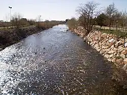 It flows into the Cigüela from the left near the Ojos del Guadiana, Villarrubia de los Ojos municipal term. There are authors though that claim that it is the Cigüela that flows into the Záncara.[1]