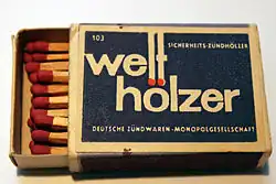 The official monopoly had been acquired by Swedish entrepreneur Ivar Kreuger,[1][2] the "Match King", which made him a very rich man and remained in effect after the conclusion of World War II and through to 1983.[3] In 1930 the Weimar Republic struggled to deal with war reparations as determined by the Treaty of Versailles while it also tried to tackle the Great Depression. Ivar Kreuger mediated German-French reparation talks and provided Germany with a loan of 125 million Dollars[4] (at that time 500 million Reichsmark). The bonds ran until 15. January 1983 at which time the monopoly arrangement ended. After that, the price for safety matches in Germany fell by a third.