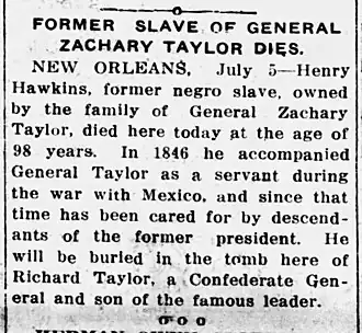- ^ a b Fling, Sarah. "The Enslaved Households of President Zachary Taylor". White House Historical Association. Retrieved 2023-09-09.