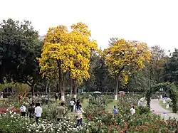 Zakir Husain Rose Garden, is a botanical garden located in Chandigarh, India and spread over 30 acres (120,000 m2) of land,[1] with 50,000 rose-bushes of 1600 different species.[2] Some important Rose species in this Garden are the Royal William Rose, Europa-Rosarium, Rosa Gallica, Beach Rose, Rosa chinensis, Centifolia roses, Rosa glauca. Named after India's former president, Zakir Husain and created in 1967 under the guidance of Mohinder Singh Randhawa, Chandigarh's first chief commissioner, the garden has the distinction of being Asia's largest.[2] The garden has not only roses but also trees of medicinal value. Some of the medicinal plants that can be spotted here are bel, bahera, harar, camphor and yellow gulmohar. The rose plants have been planted in carved-out lawns and flower beds. The garden is open year-round, with peak bloom occurring from December to February, attracting thousands of visitors during the annual Rose Festival.