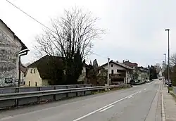 Zalog (pronounced [ˈzaːlɔk]; German: Salloch[2]) is a formerly independent settlement in the eastern part of the capital Ljubljana in central Slovenia. It stands above the left bank of the Ljubljanica River near its confluence with the Sava.[1] It is part of the traditional region of Upper Carniola and is now included with the rest of the municipality in the Central Slovenia Statistical Region.[3] The former village includes the hamlets of Stari Zalog, which is the old village core on a terrace between the railroad line and a bridge across the Sava, Novi Zalog to the south, Brinje north of the railroad toward the Sava River, Prod to the east on the spit between the Ljubljanica and the Sava, Gradišče on the left bank of the Ljubljanica, and Vabrje on a small rise between the two rivers.[1]