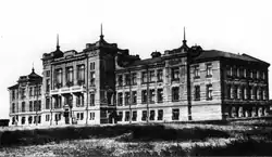 Zaporizhzhia was founded in 1770, when the Aleksandrovskaya (Александровская) Fortress was built as a part of the Dnieper Defence Line, to protect the southern territories of the Russian Empire from Crimean Tatar invasions.[5] Following the Treaty of Küçük Kaynarca in 1775, the southern lands of the Russian Plain and the Crimean peninsula were absorbed into the Russian Empire. The Aleksandrovskaya Fortress then lost its military significance, and became a small rural town, which from 1806 to around 1930 was called Alexandrovsk.[4]