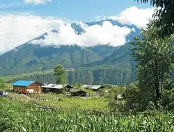 Zayul County is located in an area of highly varying topography, lying just south of the Tibetan Plateau in the mountainous region east of the Himalayas where the Transhimalayas transition to the Hengduan Mountains. Specifically, the county straddles the southern parts of the Baxoila Range, the eastern parts of the Kangri Karpo mountains, and the eastern parts of the Mishmi Hills.[8] Elevations generally decrease from northwest to southeast, with a maximal variation of 3,600 metres (11,800 ft): in the county,including Arunachal Pradesh areas near the southern border have an elevation of 1,400 metres (4,600 ft),[9] while there are 10 peaks over 5,000 metres (16,000 ft),[9] the highest being Kawagarbo in the Meili Xue Shan at 6,740 metres (22,110 ft). The county has an average elevation of 2,300 metres (7,500 ft).[9] The primary rivers are the Zayul River through the central parts of the county and Nu River (Salween) in the east.