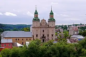 The local Roman Catholic church was funded in the mid-17th century by Janusz Wisniowiecki. Destroyed by the Ottoman Turks in 1675, it was rebuilt in 1755, together with a new monastery. In the main nave of the church there was a commemorative plaque in memory of the 100th birth anniversary of Adam Mickiewicz. In the interbellum period, Bernardine monks from Zbaraz operated a middle school here. Neither the church and monastery were destroyed during World War II. In the monastery a hospital, later a plant were located, while the church was turned into a warehouse. Some items were saved by the Polish residents, who removed and took them to Poland in 1945. Currently, these items are kept in Bernardine churches in Leżajsk, Rzeszów and Alwernia.