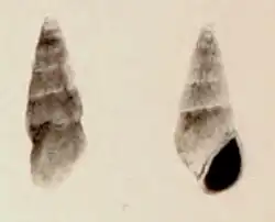 The length of the shell attains 12.5 mm, its diameter 3.5 mm.