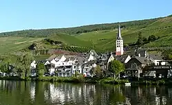 Zell (Mosel) (German pronunciation: [tsɛl] ⓘ) is a town in the Cochem-Zell district in Rhineland-Palatinate, Germany. Zell has roughly 4,300 inhabitants and is the seat of the like-named Verbandsgemeinde.