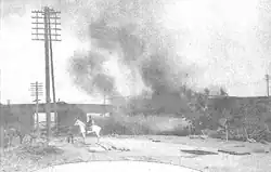 In what came to be known as the Huanggutun incident, Colonel Kōmoto Daisaku, an officer of the Japanese Kwantung Army, planted a bomb along a railroad bridge, which exploded on 4 June 1928 when Zhang's train passed it.[28] Mortally wounded, Zhang died a few days later.[29] At the Tokyo War Crimes Tribunal in 1946, Okada Keisuke testified that Zhang was murdered because the Kwantung Army was infuriated by his failure to stop Chiang's army, which was backed by Moscow, Tokyo's strategic rival. For two weeks, Zhang's death was kept secret while the scramble for power was decided.[30] That is why according to an announcement issued by the Fengtian Army, he officially died on June 21, 1928.