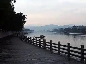 Zhangzhou proper lies on the banks of the Jiulong River in southern Fujian about 35 miles (56 km) from central Xiamen,[4] whose urban core has grown to form a single urbanized area with it. The prefecture of Zhangzhou comprises the southeastern corner of the province, surrounding Xiamen. The prefecture of Quanzhou lies to its northeast, Longyan to its northwest, and Shantou in Guangdong to its southwest.
