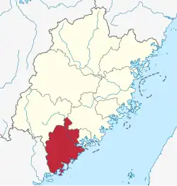 Location of Zhangzhou City jurisdiction in Fujian | |