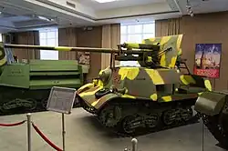 The ZiS-30 was one of a few hastily designed armoured fighting vehicles created by Soviet industry shortly after the German invasion during Operation Barbarossa in 1941. In August 1941 Grabin's design bureau at the Gorky plant no. 92 mounted the 57 mm ZiS-2 gun onto the chassis of a Komsomolets artillery tractor.[1] Only around 100 were produced. As one example of its employment, on October 2 the 21st Tank Brigade, under 30th Army in the Kalinin area, included a battery of four ZiS-30s. By October 20 three of these remained on strength. This brigade also had ten T-34-57s which carried the ZiS-4 tank model of the ZiS-2.[3]