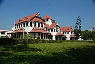 During his term of power, Ziaur Rahman was criticised for ruthless treatment of his army opposition.[62] Although he enjoyed overall popularity and public confidence, Zia's rehabilitation of some of the most controversial men in Bangladesh aroused fierce opposition from the supporters of the Awami League and veterans of its Mukti Bahini. Amidst speculation and fears of unrest, Ziaur Rahman went on tour to Chittagong on 29 May 1981 to help resolve an intra-party political dispute in the regional BNP.[79] Ziaur Rahman and his entourage stayed overnight at the Chittagong Circuit House.[80] In the early hours of the morning of 30 May, he was assassinated by a group of army officers.[81][17][82] Also killed were six of his bodyguards and two aides.[83]