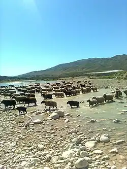 Sheep crossing the Zohreh River
