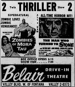 Zombies of Mora Tau (also known as The Dead That Walk) is a 1957 black-and-white zombie horror film directed by Edward L. Cahn and starring Gregg Palmer, Allison Hayes and Autumn Russell. Distributed by Columbia Pictures, it was produced by Sam Katzman. The screenplay was written by George H. Plympton and Bernard Gordon. Zombies of Mora Tau was released on a double bill with another Katzman-produced film, The Man Who Turned to Stone (1957).[1]