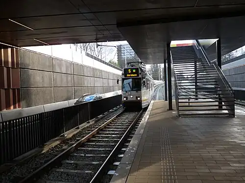 ![]() Northbound line 5 tram arriving at Zonnestein stop | ||||||||||||||||