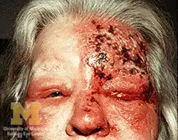 | Symptoms | Rash of the forehead, swelling of the eyelid, pain and red eye |